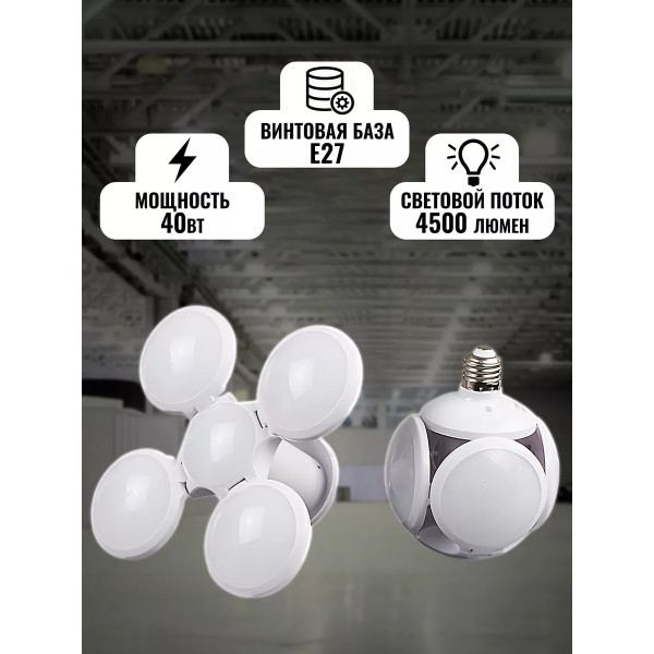 Складной LED светильник Footbool UFO Lamp, E27 - креативный и новый легкий дизайн с футбольной формой, предназначен для освещения различных интерьеров вашего дома, можно использовать в мастерских и гаражах. Низкое энергопотребление и сверх яркость. Безопасное освещение: встроенный интеллектуальный основной чип может защитить свет от перегрузки по току, перенапряжения и перегрузки.