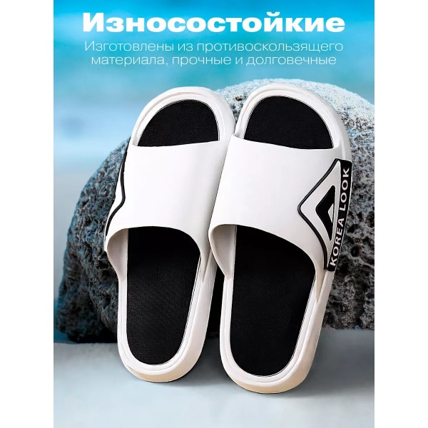 Удобная, комфортная обувь на все случаи жизни – мягкие шлепанцы. Легкие и красивые белые сланцы изготовлены из материала ЭВА – прочного и практически невесомого. Отличный вариант для работы, где нужно подолгу находиться на ногах. Сандалии позволят забыть об усталости ног.