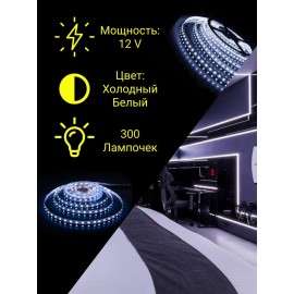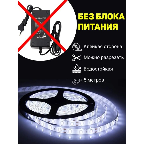 Светодиодная лента LED SMD 3528 5m (Белая) в катушке, с контроллером. Строение ее напоминает RGB ленту 3528, но светодиоды в ней полностью белые.