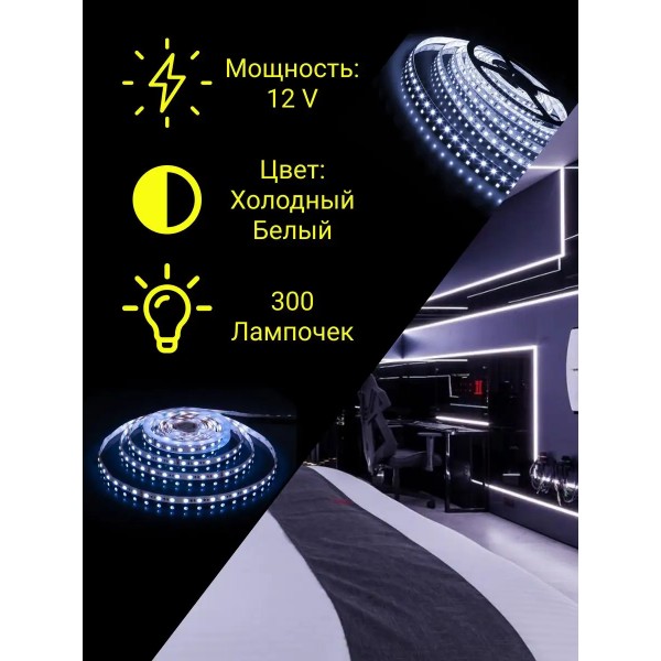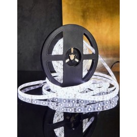 Белая светодиодная лента универсальна и прекрасно подойдет для подсветки потолка, мебели, декоративных полок, ниш, зеркал, пола, стен, подсветки барельефа, бытовой техники, витрины, в автомобиле - вот небольшой перечень где можно применить светодиодную подсветку. Данная LED лента – влагостойкая (IP65), поэтому прекрасно подойдет для уличной подсветки, в местах взаимодействия с влагой, а так же в душевых и бассейнах. Яркость, динамичность и наличие различных эффектов свечения делает эту ленту прекрасным вариантом для привлечения внимания к витрине, баннеру, окну магазина или кафе. Довольно интересных решений можно достичь в интерьерном оформлении.