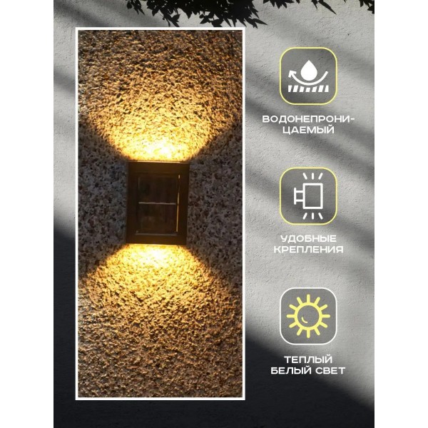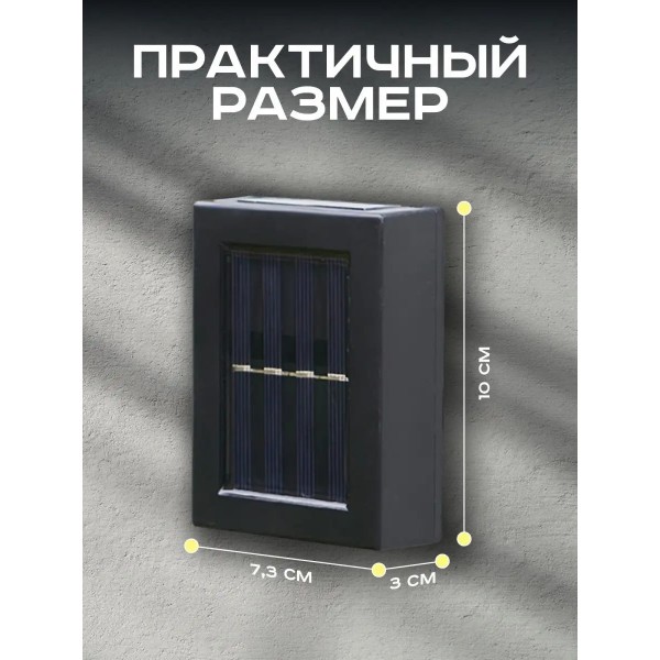 Настенный светодиодный светильник на солнечных батареях - современное и экологичное решение для Вашего садового участка. Светильник настенный черный подойдет под интерьер и фасад любого дома и участка. Подсветка не промокает, так как имеет влагозащиту IP65, не боится ветра, дождя или снега.