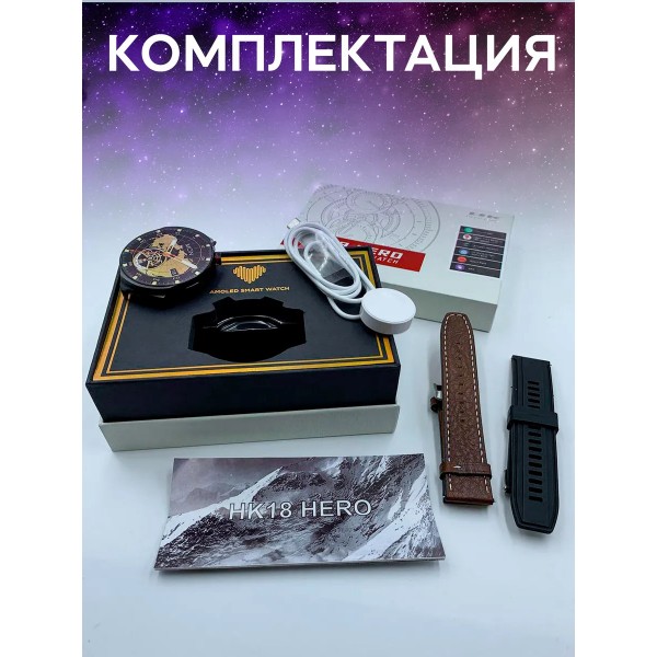 Смарт часы HK-18 Hero AMOLED - это умные часы, которые предлагают широкий спектр функций для отслеживания вашей физической активности и связи на ходу. Смарт-часы имеют поддержку сетей Wi-Fi. Дисплей: Смарт-часы с настоящим 3D AMOLED экраном 60 Гц, 32 бита,46 мм, делают смарт часы незаменимым аксессуаром в повседневной жизни. Отслеживание физической активности: Часы смарт HK-18 Hero AMOLED оснащены функциями отслеживания физической активности, включая отслеживание шагов, расстояния, сжигания калорий и мониторинг сна. Мониторинг сердечного ритма: Смарт-часы HK-18 Hero AMOLED имеют встроенный датчик сердечного ритма, позволяя отслеживать ваш сердечный ритм в режиме реального времени. Соединение: Smart WatchHK-18 Hero AMOLED происходит через Bluetooth, позволяя получать уведомления, контролировать воспроизведение музыки и доступ к другим функциям. Уведомления: Вы можете получать уведомления с вашего телефона, включая звонки, сообщения, электронную почту и уведомления социальных сетей. Встроенный динамик и микрофон позволяют разговаривать со смарт-часов. Контроль музыки: Вы можете контролировать воспроизведение музыки напрямую со смарт-часов. Совместимость: HK-18 Hero AMOLED совместимы с устройствами на базе Android и iOS.