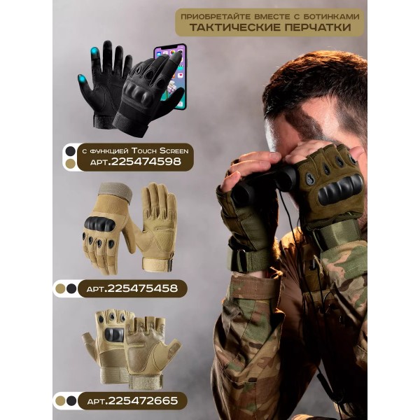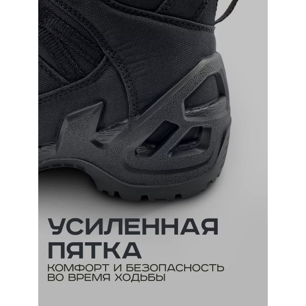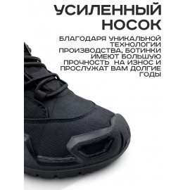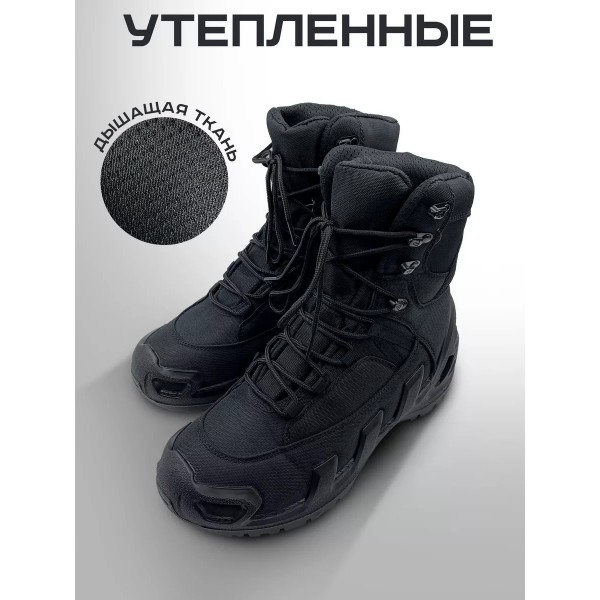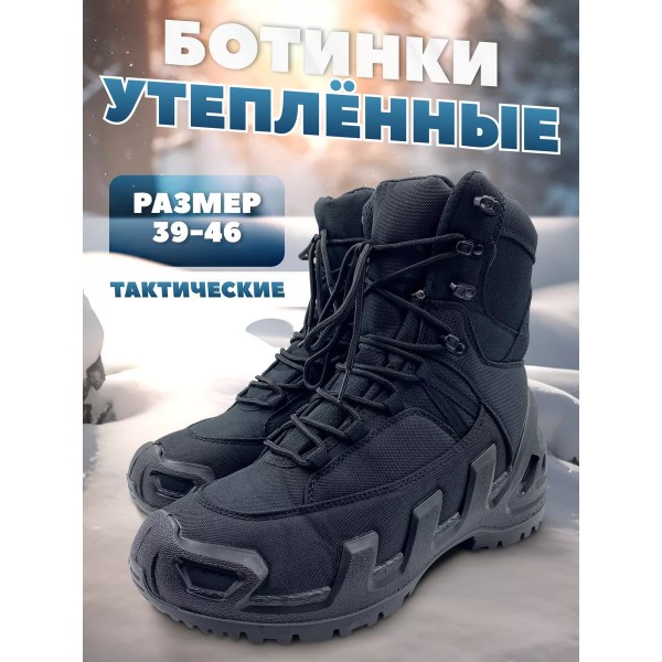 Внимание! Зимние утепленные ботинки мужские тактические идут с высоким берцем размер в размер, зимние кроссовки - смотрите под размером длину стельки в сантиметрах! Тактические ботинки Лова, берцы водостойкие и дышащие, заслужившие большое количество наград и положительных отзывов. Черные берцы это аналог LOWA, не уступающий по качеству материалов и комфртабельности с высоким берцем. Походные ботинки изготовлены из высококачественной микрофибры толщиной 2 мм и прочного материала Cordura. Данная модель имеет мембрану, которая обеспечивает водонепроницаемость и отводит излишки влаги с поверхности кожи. Система шнуровки ботинка состоит из нейлоновых петель и металлических накладных петель, в которых вставлены прочные полипропиленовые шнурки, позволяет ускоренно зашнуровывать берцы, экономя драгоценное время. Разработаны для самых тяжелых условий, наиболее приспособлены для активного отдыха и туризма. Прочная и надежная мужская обувь отлично зарекомендовала себя в спецподразделениях РФ, пройдя самые жёсткие испытания в условиях по-настоящему суровой зимы и любой пересечённой местности. Трекинговая обувь военная подойдет для активного туризма, охоты и рыбалки, а так же для комфорта мобилизованных солдат призывников или как ботинки рабочие мужские. Ботинки для туризма и походов - это сверхпрочная обувь для Вас! Туристические ботинки, как классическая и универсальная обувь для многих типов местности, ботинки подходят для горного туризма, для путешествий или пеших прогулок походов в лес в горы. Стильный дизайн и удобство позволяет использовать тактическую обувь для каждодневной носки в городе. Такая экипировка обеспечивает: надежное сцепление с разными видами поверхности; защиту от механических воздействий; высокую износостойкость при качественной и прочной фурнитуре. Берцы мужские имеют эргономичную стельку для максимального комфорта при длительных высоких нагрузках. Обработайте кроссовки мужские водооталкивающим спреем и ваша обувь будет сухая.