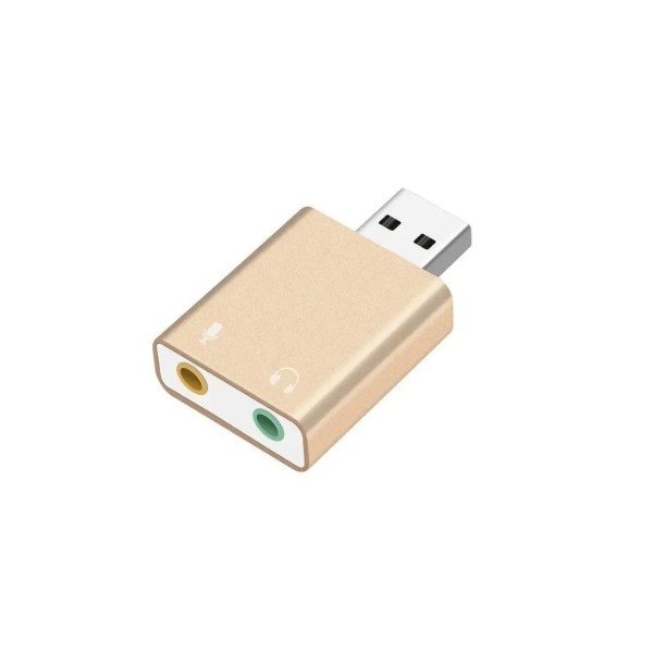 Внешняя звуковая карта USB для 3D-аудио имеет гибкий аудиоинтерфейс, универсальный, совместимый со всеми операционными системами ПК и ноутбука и т. Д. В комплект с программным обеспечением входит Xear 3D Sound, он превращает ваш стереодинамик или наушники в 7.1-канальный звук на ваш ПК. Не требуется внешний драйвер и питание, просто подключите его и перейдите для мгновенного воспроизведения звука. Оболочка из алюминиевого сплава, внешний вид благородный, изящный и долговечный. Компактный размер, удобно оставить его подключенным к ноутбуку.Материал: алюминиевый сплавЦвет: золотойКомпьютерный разъем: USB 2.0 maleРазъем для наушников / динамиков (зеленый): 3,5 ммМикрофонный разъем (розовый): 3,5 мм.